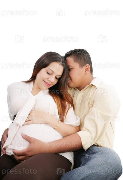 Беременная женщина на сроке 8 месяцев с мужем