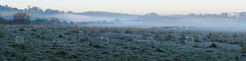 Сельскохозяйственные угодья морозным утром на полуострове Морнингтон, Виктория, Австралия