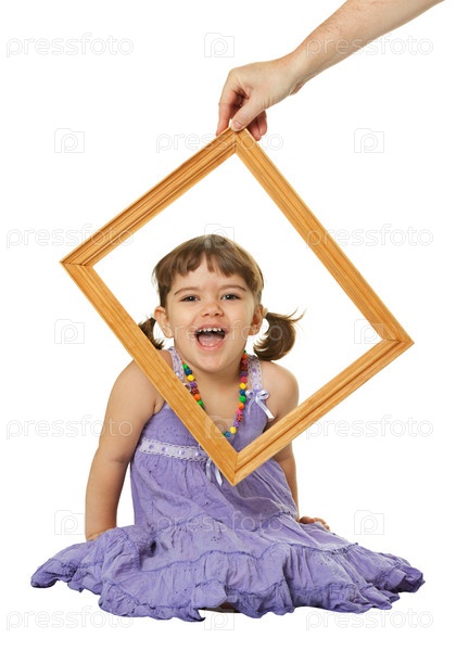 Счастливая девочка смотрит через рамку