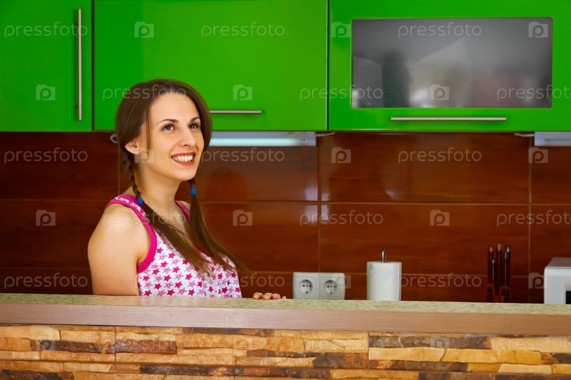 Молодая женщина мечтает на кухне
