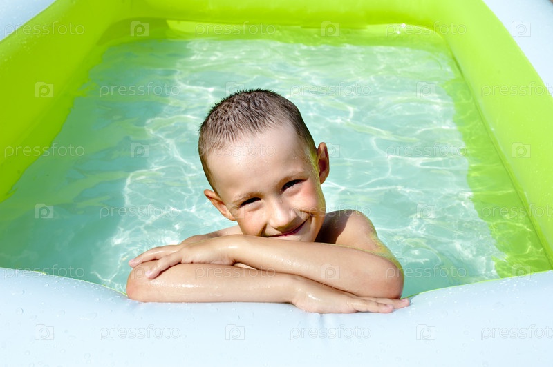Мальчик купается в детском бассейне