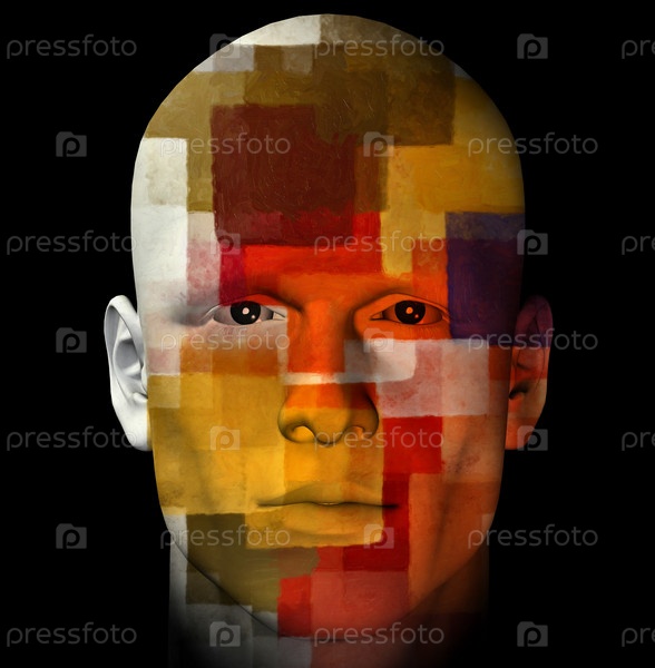 Мужской портрет в стиле красочного кубизма. 3D компьютерная иллюстрация