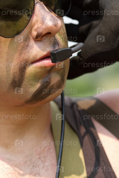 Мужчина в камуфляжной форме с рацией