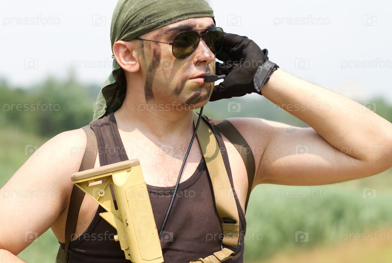 Мужчина в камуфляжной форме с рацией