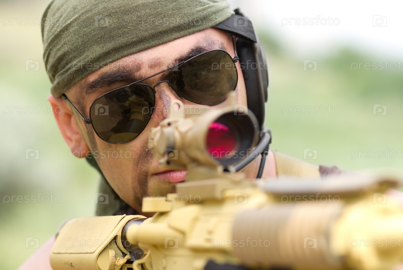 Мужчина в камуфляжной форме с оружием