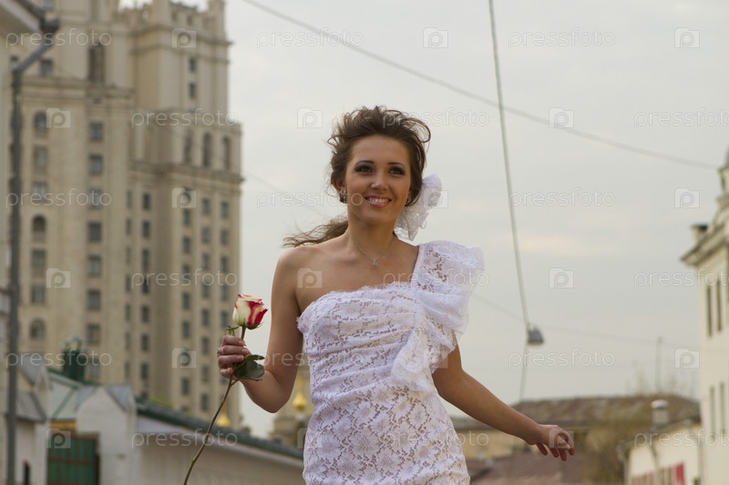 Девушка с цветком на московской улице
