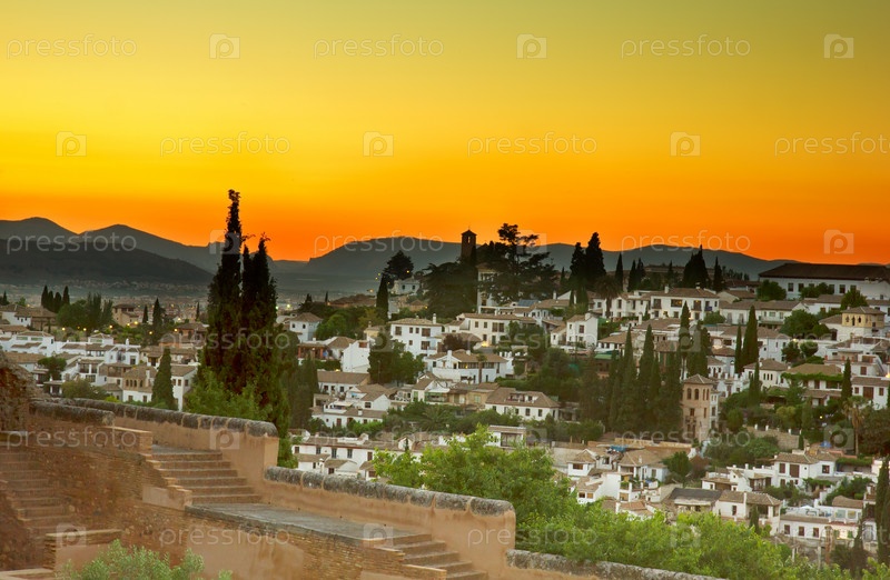 Старый арабский район Альбайсин в Гранаде на закате, Испания