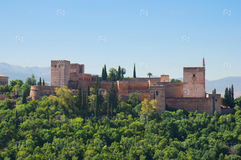 Крепость Альгамбра на вершине холмов, Гранада, Испания