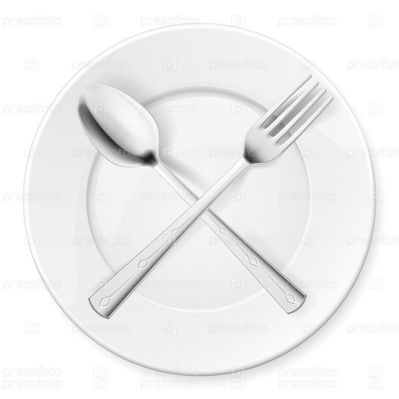 Ложка, вилка и тарелка, изолированные на белом фоне