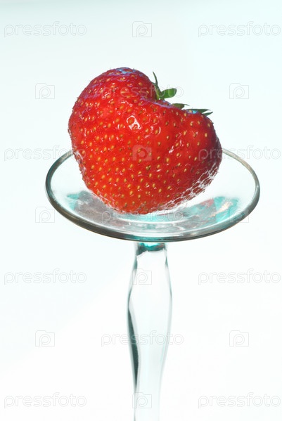 Ягода клубники на стеклянной подставке