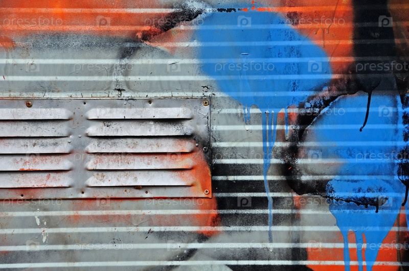 Фрагмент металлической поверхности, покрытой беспорядочными граффити