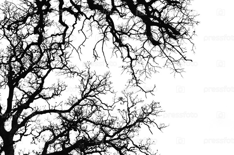 Силуэт ветвей дуба. Черное и белое