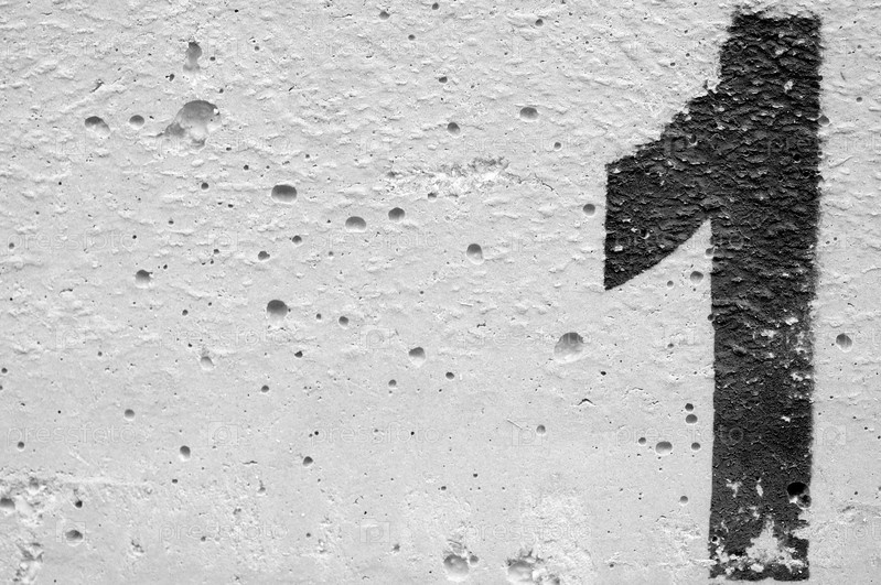 Цифра один на шероховатой поверхности бетона. Черное и белое