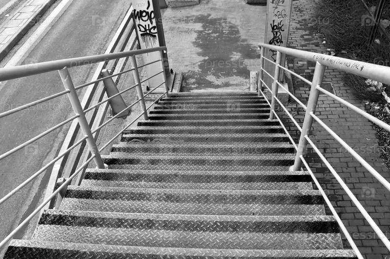 Металлическая лестница пешеходного моста. Черное и белое