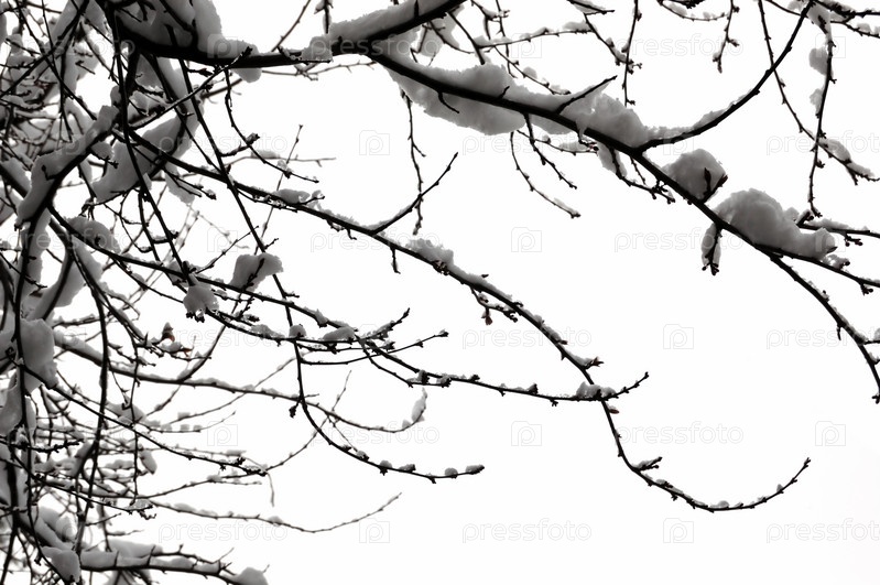 Ветви дерева, покрытые снегом. Зимний фон