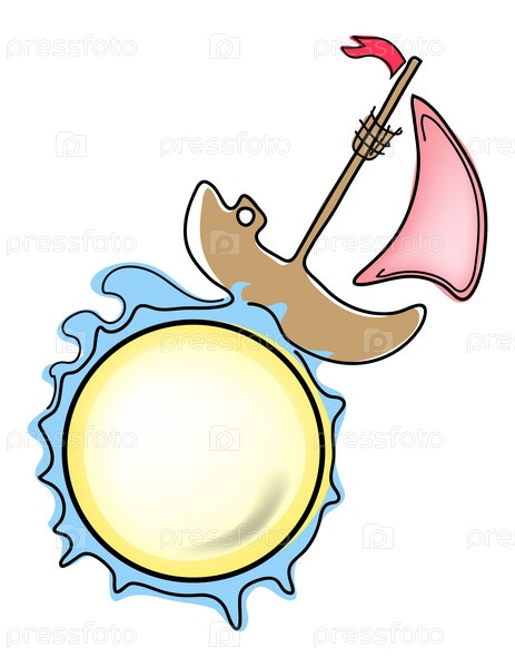 Кораблик и земной шар на белом фоне