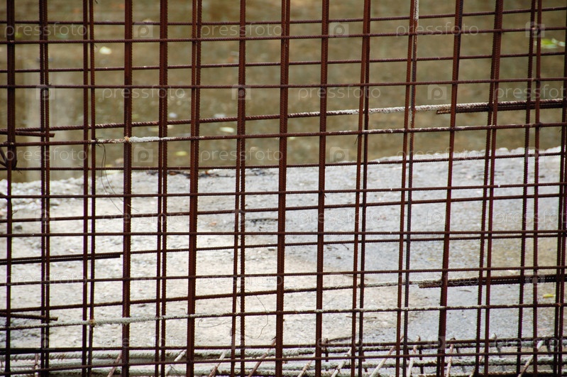 Ржавая металлическая сетка ограждения на строительной площадке. Абстрактный фон