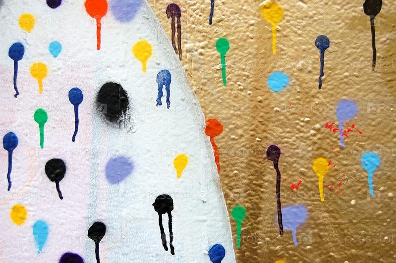 Фрагмент стены, покрытой точками краски. Граффити