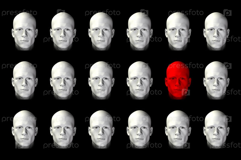 Лицо выделяется из толпы. Трехмерная цифровая иллюстрация