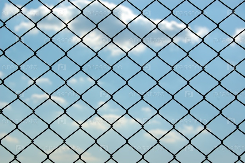 Забор из проволочной сетки на фоне голубого неба