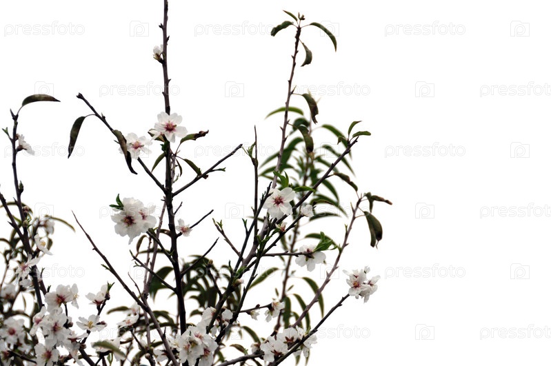 Цветущее миндальное дерево на белом фоне