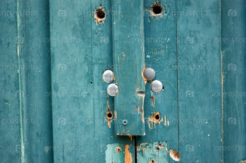 Старинные деревянные синие двери крупным планом