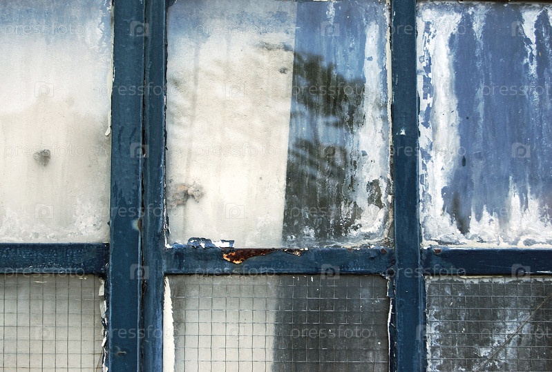 Заводское окно с отражениями деревьев. Абстрактный фон