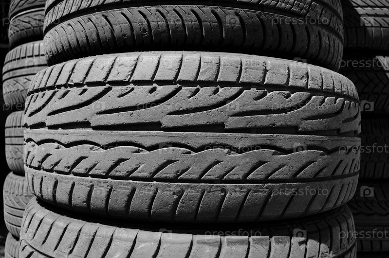 Подержанные автомобильные шины. Черное и белое