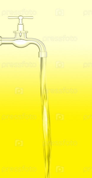 Водопроводный кран с водой на желтом фоне