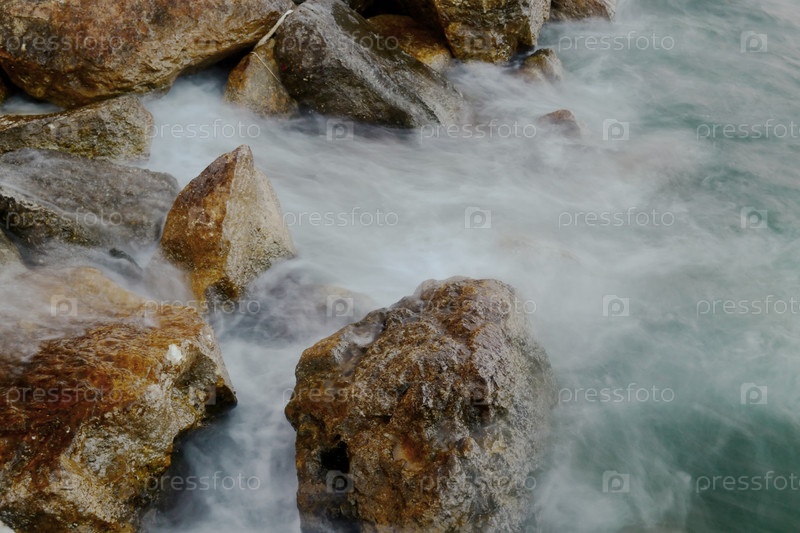 Камни в воде. Размытое движение волн при долгой выдержке