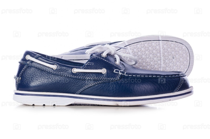 Синие кожаные туфли на толстой подошве, изолированные на белом фоне