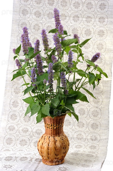 Пучок Лофанта морщинистого в плетеной вазе