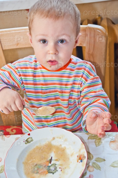 Ребенок самостоятельно кушает кашу