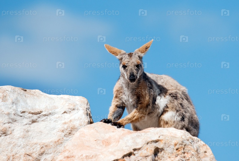 Вымирающий желтоногий скалистый кенгуру в дикой природе