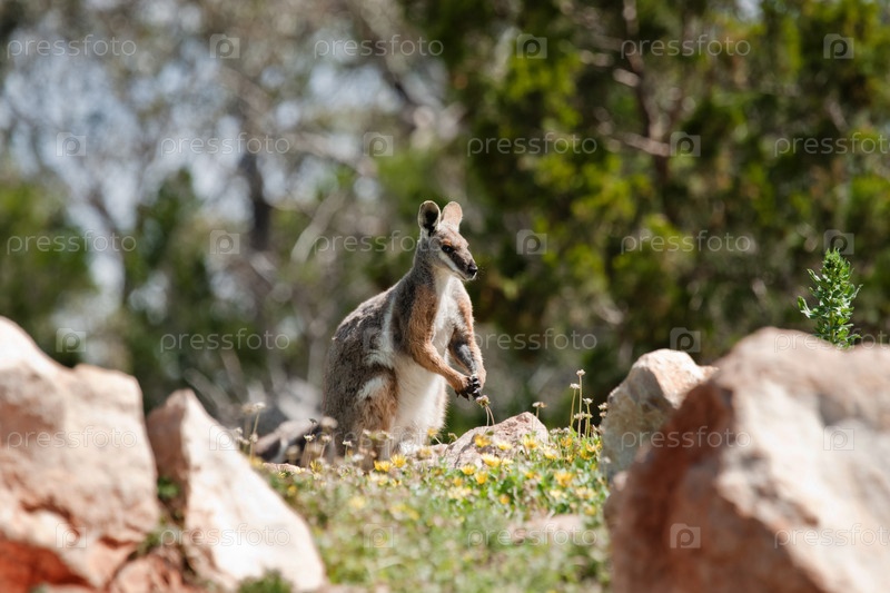 Вымирающий желтоногий скалистый кенгуру в дикой природе