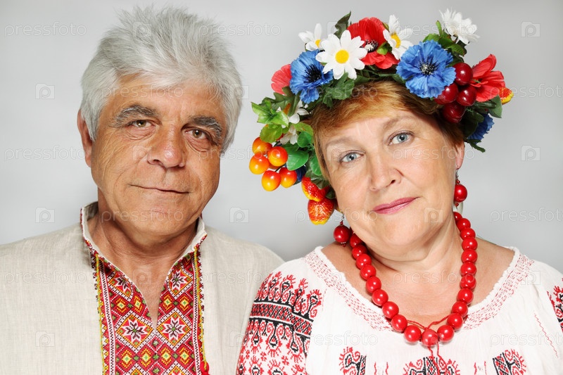 Портрет пожилой супружеской пары в украинских костюмах
