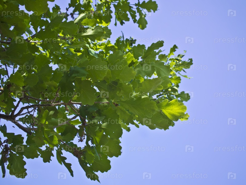 Дубовые листья на фоне неба