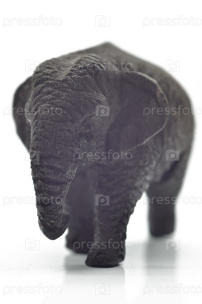 Статуэтка слона из тикового дерева крупным планом на белом фоне