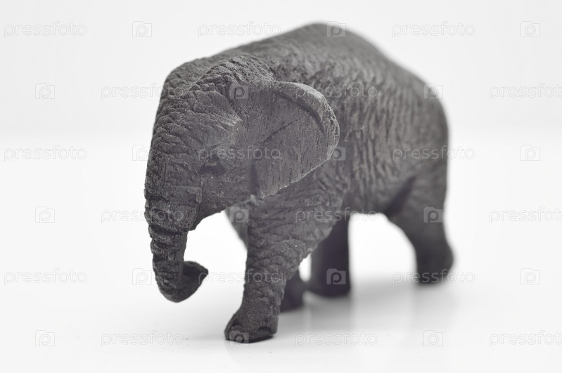 Статуэтка слона из тикового дерева крупным планом на белом фоне