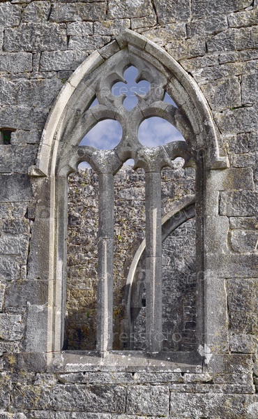 Руины монастыря Килмакдуа, графство Голуэй, Ирландия. Окно