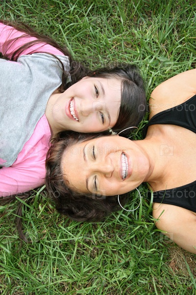 Мать и дочь на траве