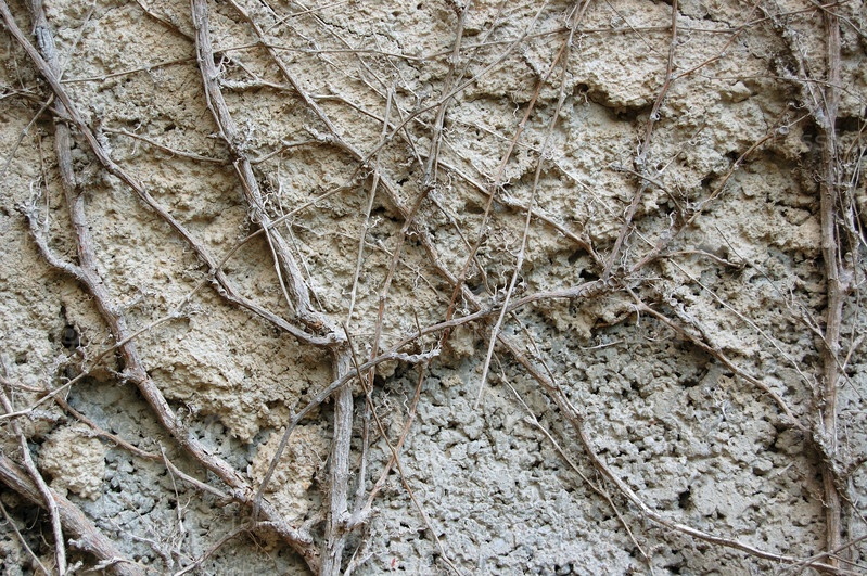 Корни плюща на кирпичной стене