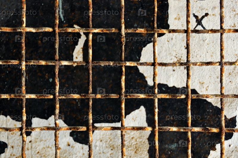 Ржавая дверь с металлической решеткой и отколотая краска. Абстрактная промышленная текстура