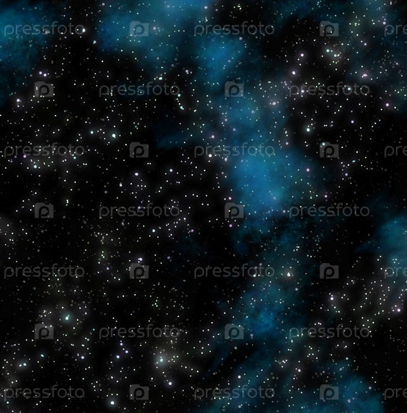 Много звезд и синяя туманность в космическом пространстве