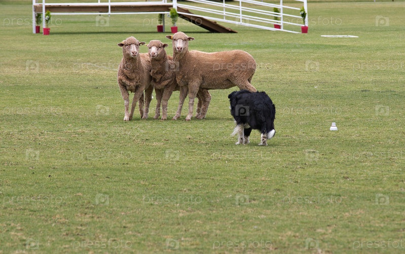Рабочая собака породы пограничный колли пасет овец
