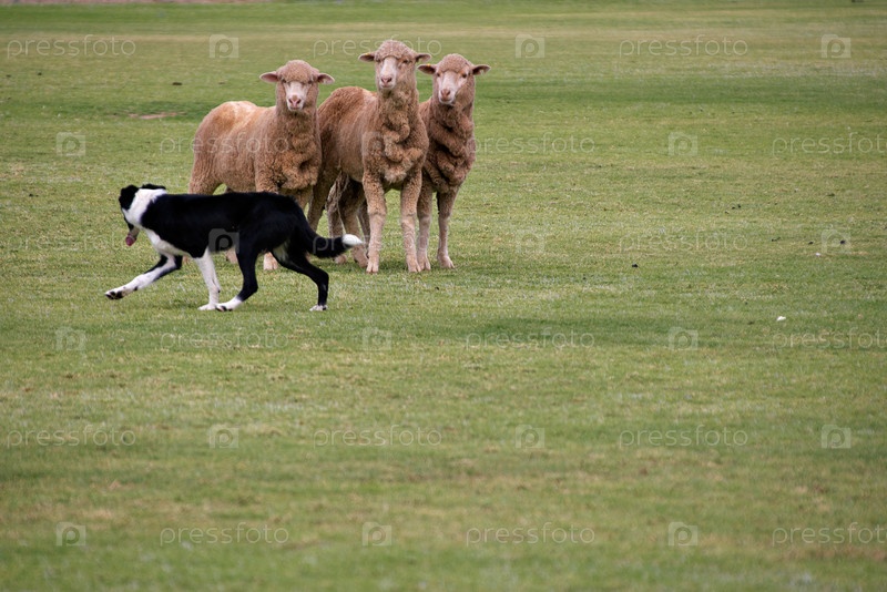 Рабочая собака породы пограничный колли пасет овец