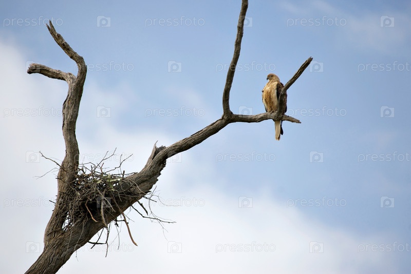 Коршун-свистун возле своего гнезда на дереве