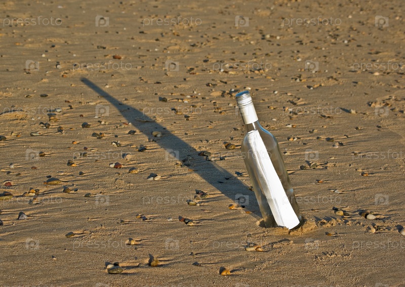 Послание в бутылке на песчаном пляже