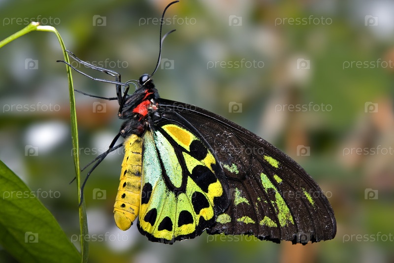 Зелено-черная бабочка крупным планом