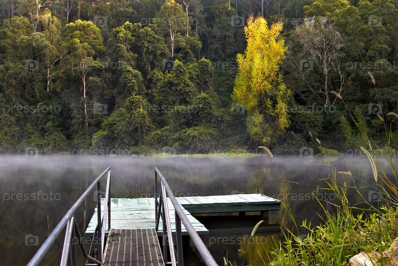 Туман поднимается от воды на плотине Тунамба